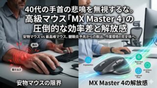 最高の椅子や昇降デスクを揃え、完璧な作業環境を作り上げたはずなのに、夕方になると右手の「手首」だけがジンジンと重だるくなっていませんか?厳しいことを言いますが、安物マウスを使い続けるのは、100m走をスリッパで走るようなものです。どれだけ良...