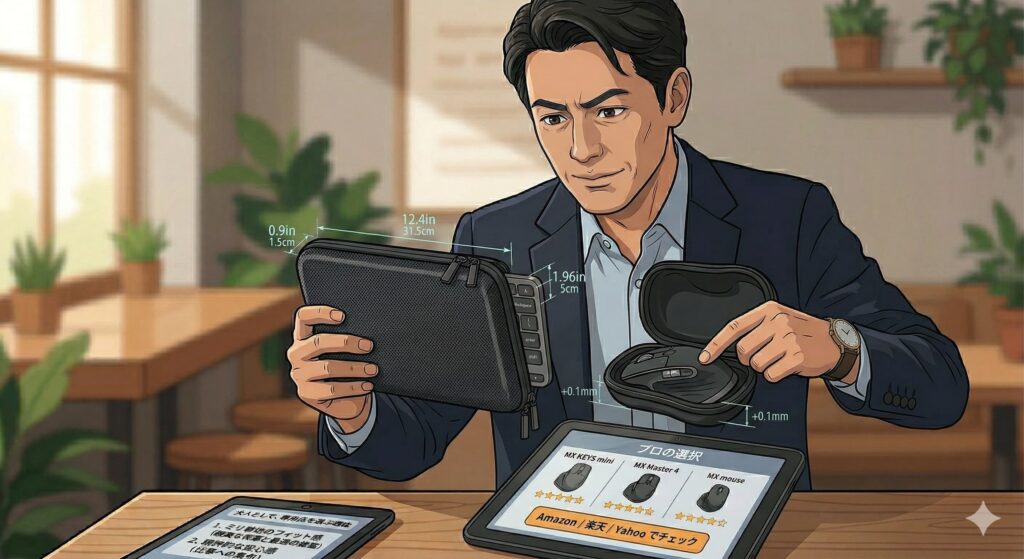 結論から言います。MXシリーズの持ち運びにおいて、汎用ポーチを選ぶのはおすすめしません。40代のビジネスパーソンたるもの、ここは「専用設計」にこだわるべきです。その理由は2つあります。