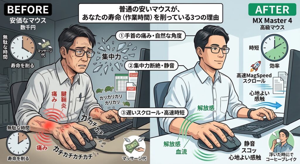 普通の安いマウスが、あなたの寿命(作業時間)を削っている3つの理由
