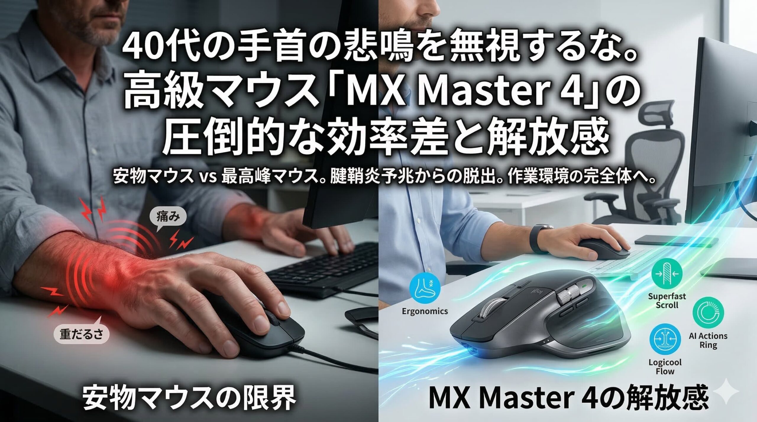 手首の疲労や腱鞘炎の予兆に悩む40代のデスクワーカーは、今すぐ「MX Master 4」に投資すべきです。